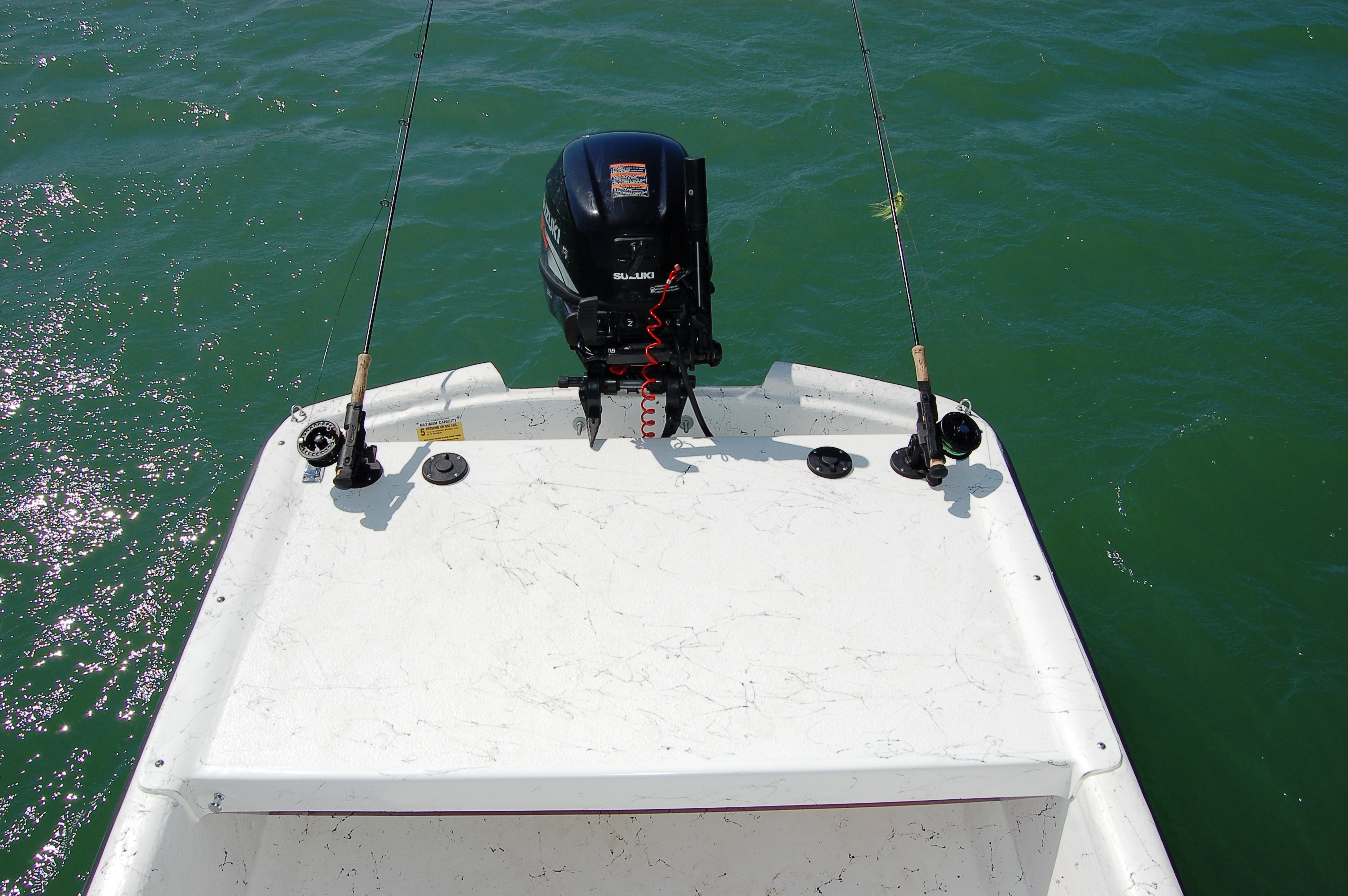 I was running a Suzuki 25 four stroke on mine, got around fine. Rigged up simple and kept light and uncluttered, they are pretty slick little fishing skiffs. Perfect for two adult anglers and a reasonable amount of gear. With 3 adults and/or a bunch of ice chests, marine batteries, etc… They get sluggish real quick. Also, probably wise not to penetrate the floor with screws. Foor is foam filled and is completely sealed, but it will inevitably suck water around the screws when it expands/contracts in hot/cold weather.