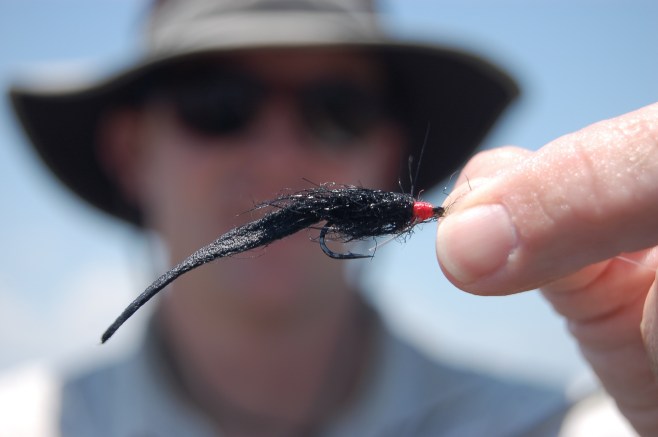 Watch the drum’s tail and use it to determine roughly where his head is and what direction he’s moving. Try to drop the fly right in front of his head and allow the fly to sink to the bottom. When you think the drum is on it, give the fly several very short twitches or drag it a few inches. As soon as you see the drum’s tail dip or any other changes his in behavior that indicate a strike, set the hook. If you get no reaction from the drum, carefully pull the fly away and drop it on him again. Remember- the presentation is more important than the fly.