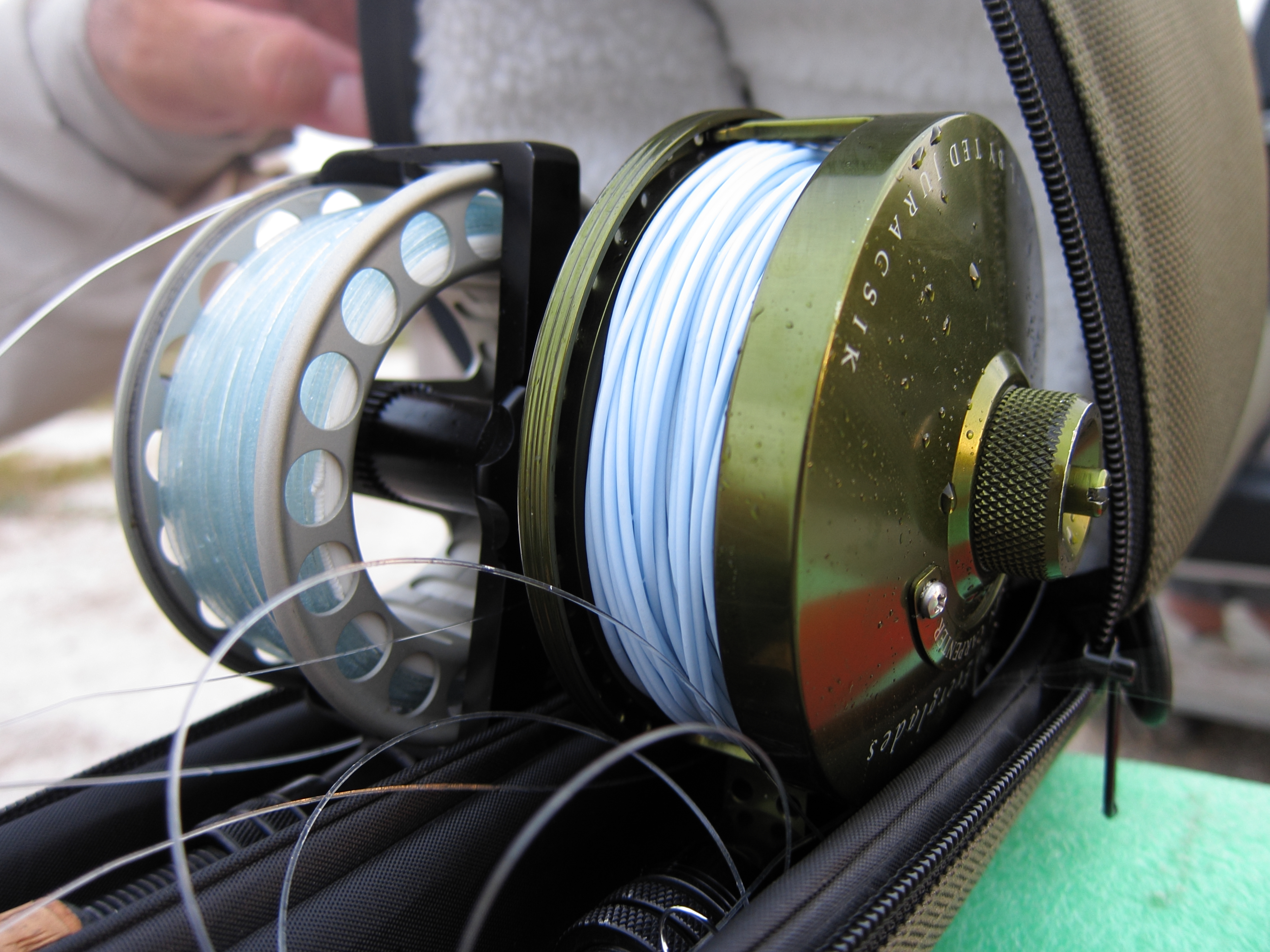 Over the next hour we cast nearly every fly we had at those goofy fish. Glaze-eyed and strong-willed, they just kept swimming in big circles like hypnotized salmon, barely flinching as flies rained down on them again and again. It was as though their dial was stuck on “swim.” I finally managed to tag one with a chrome baitfish pattern, but could not repeat it.