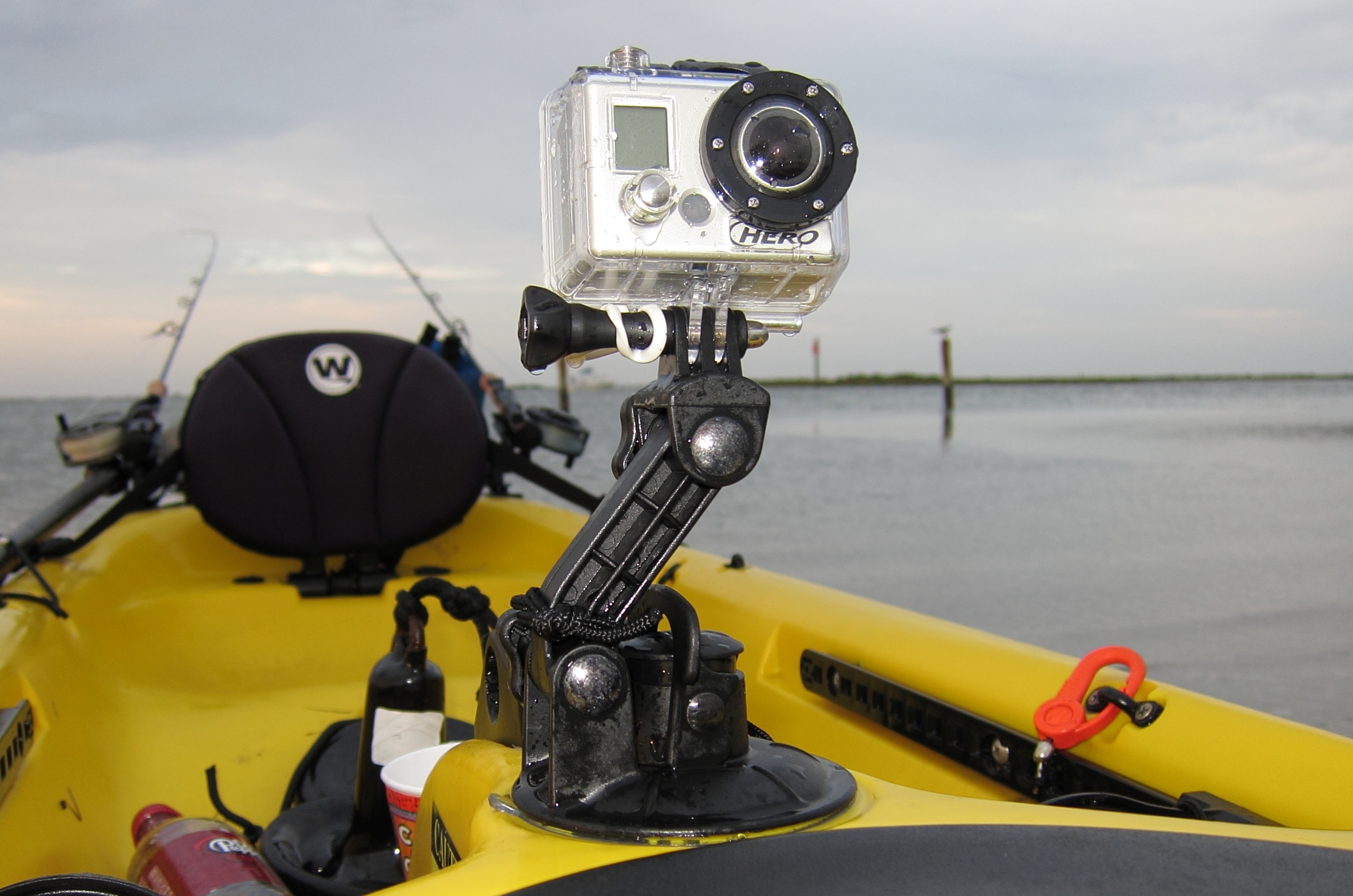 The GoPro Hero HD will record 1080p HD video at 30 frames per second and 720p HD video at 60 frames per second. The resolution and color saturation of recorded HD video is very good and the overall quality rivals any other compact HD video camera I have seen. The GoPro HD also records still photos at a resolution of 5 megapixels and can be programed to snap photos automatically at 2, 5, 10, 30, and 60 second intervals. The GoPro HD housing is equipped with a super wide angle lens and it captures a lot of real estate (170 deg on 720p and 127 deg on 1080p). This lens also has the inherent effect of “absorbing” camera-shake, so even under very rough conditions video lacks that disturbing “shakiness.” The GoPro HD Hero is a perfect camera to mount to your kayak or to the console of your boat. It’s available in several different packages and is priced around $299.00.