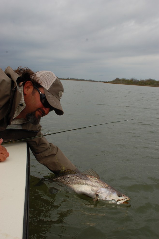 Scott Sommerlatte releasing large speckled trout