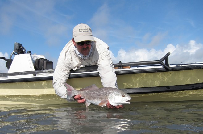 Releasing redfish from Capt. John Spencer’s Hell’s Bay poling skiff